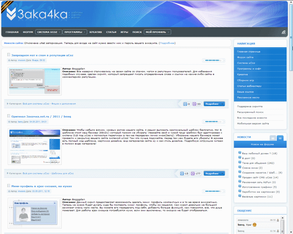 Сборник новых Ucoz скриптов (от 27.04.11)